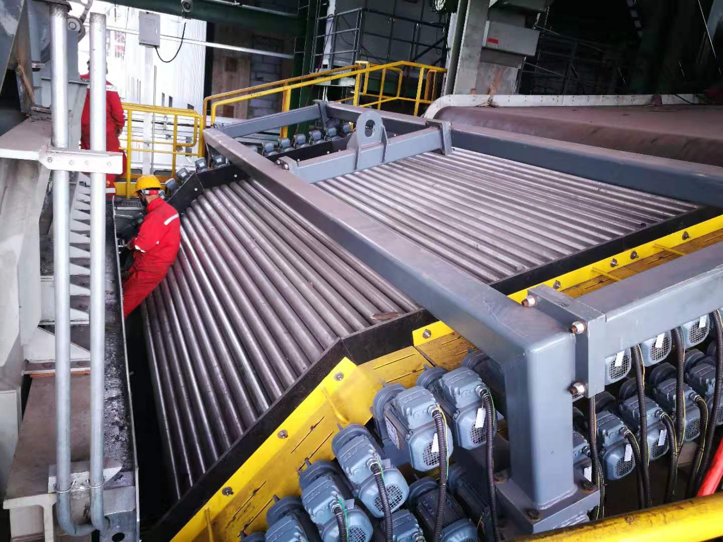 1)4m臺車僅采用φ85mm的輥子,輥間凹槽淺,篩分效果好;2)輥子采用離心鑄造,撓度小、不易變形,生球合格率高;3)輥子表面設(shè)置涂層,不易粘料、使用壽命長;4)采用新型側(cè)擋板,不會在輥子表面產(chǎn)生拉溝,輥子使用壽命長。