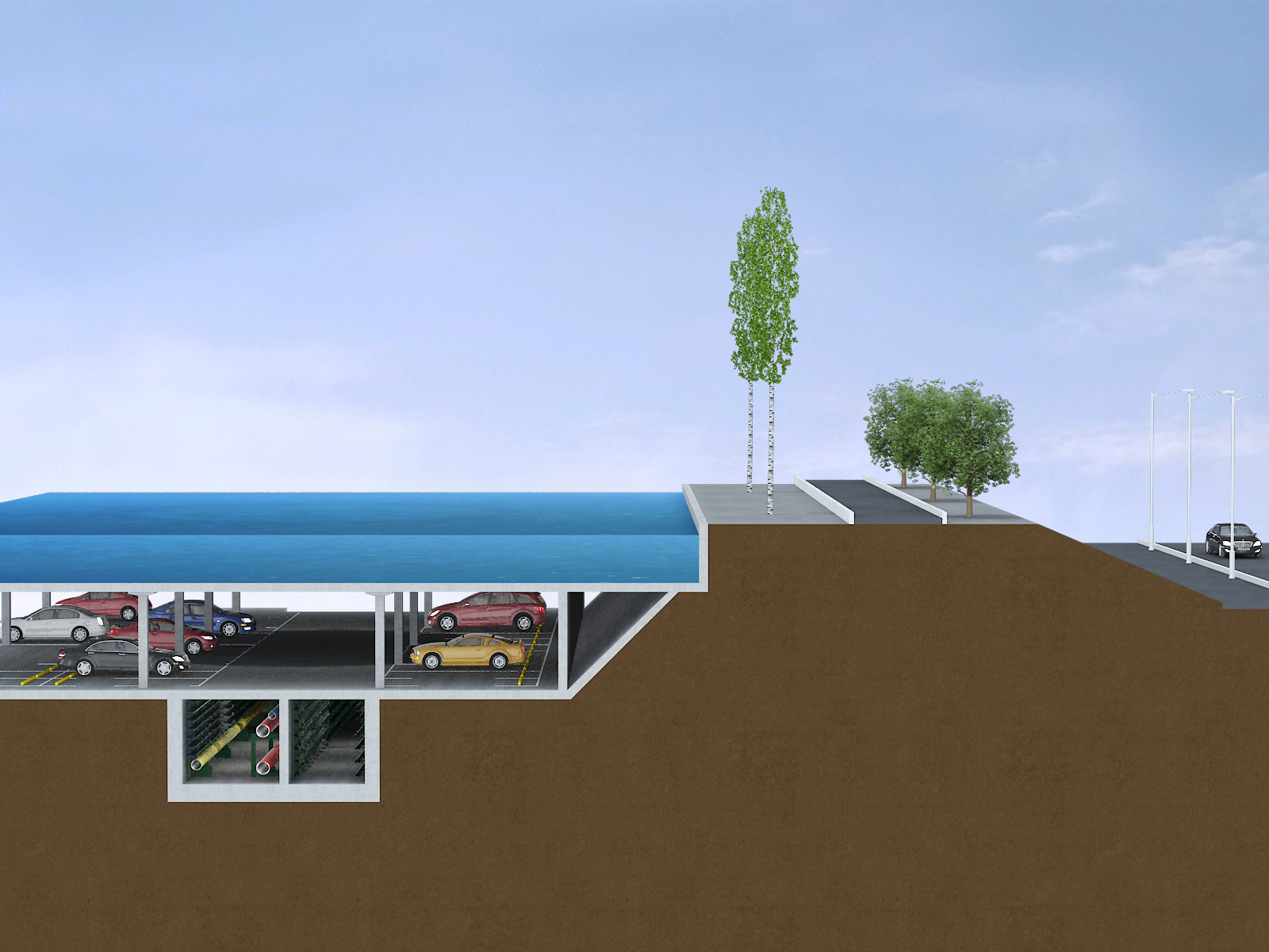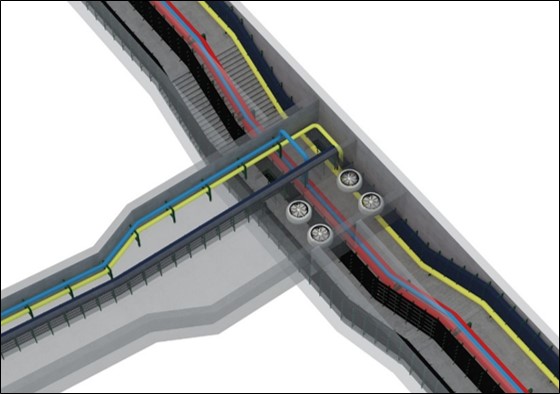 位于首鋼北京產業園區秀池底部停車場的下方,全長780米,綜合管廊斷面尺寸:7.0m*3.7m,雙艙室結構,分為綜合艙和強電艙,容納熱力管、供水管、再生水管、電力電纜及電信管道等市政管線。