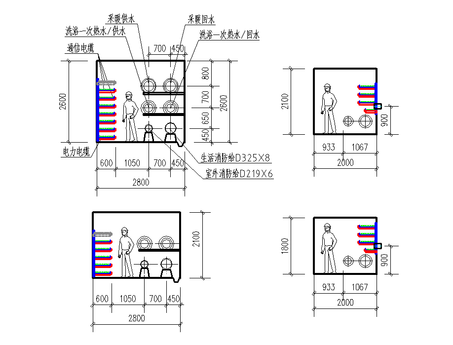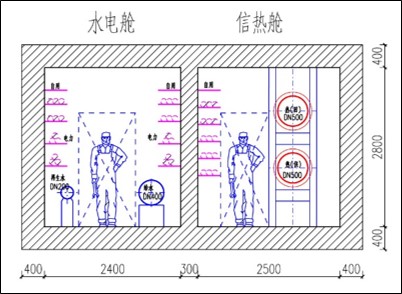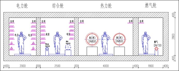 4476工程地下綜合管廊 管廊總長為3.67km,斷面尺寸4.2mX2.6m,內含采暖熱水管、洗浴熱水管、生活消防給水、室外消防給水、電力電纜及電信電纜等管線