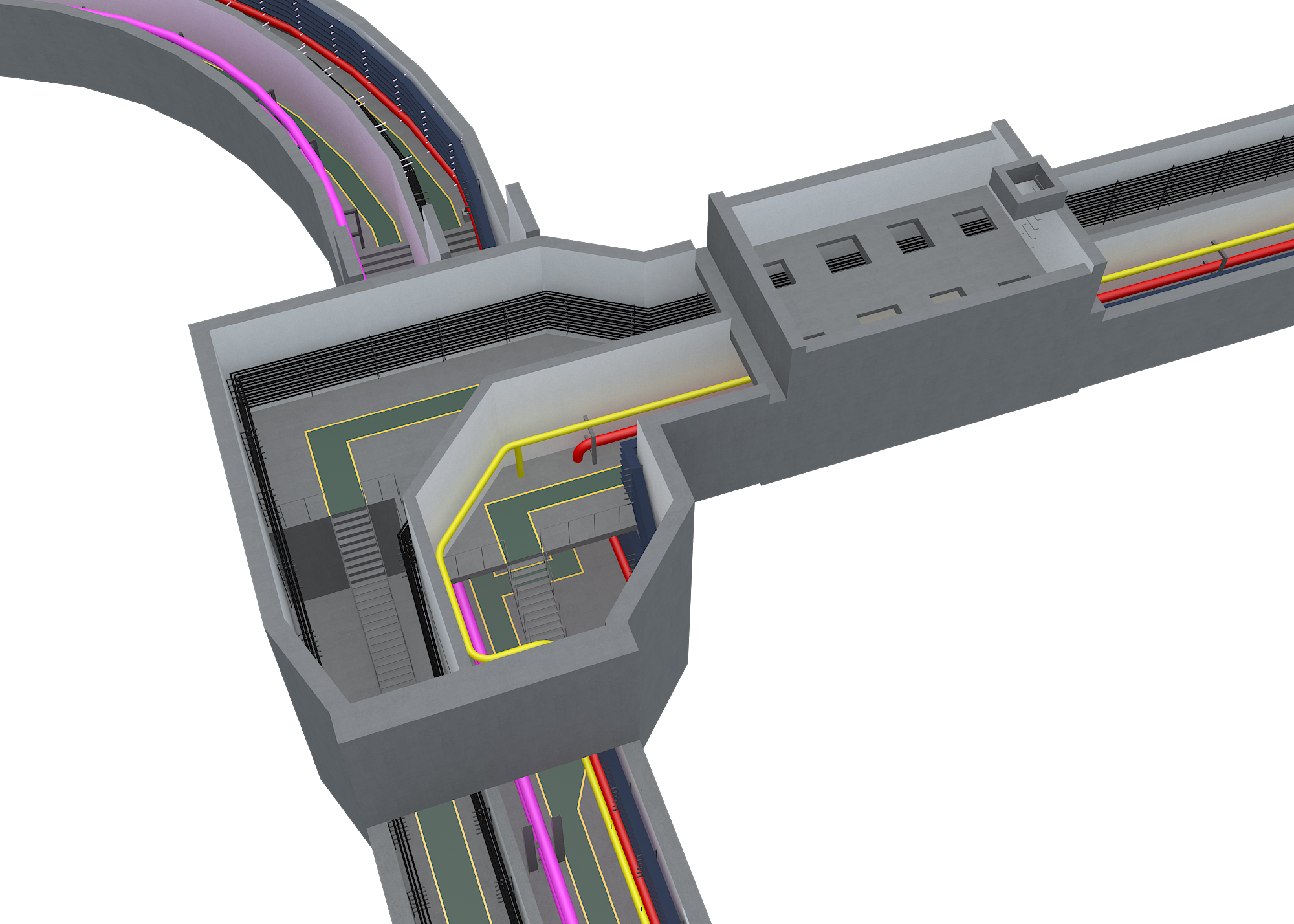 新首鋼高端綜合產業園區秀池綜合管廊 位于首鋼北京產業園區秀池底部停車場下方。全長780米,分為綜合艙和強電艙,內含采熱力管、供水管、再生水管、電力電纜及電信電纜等管線。
