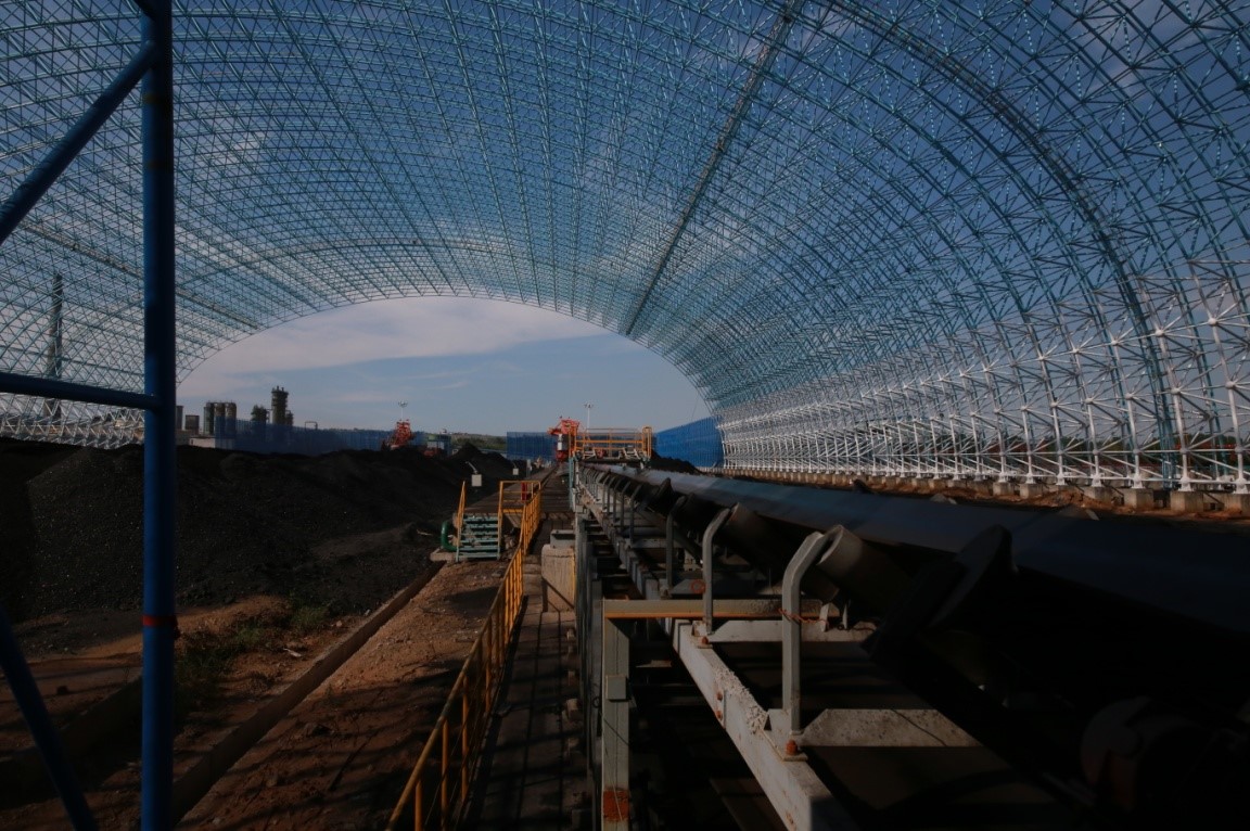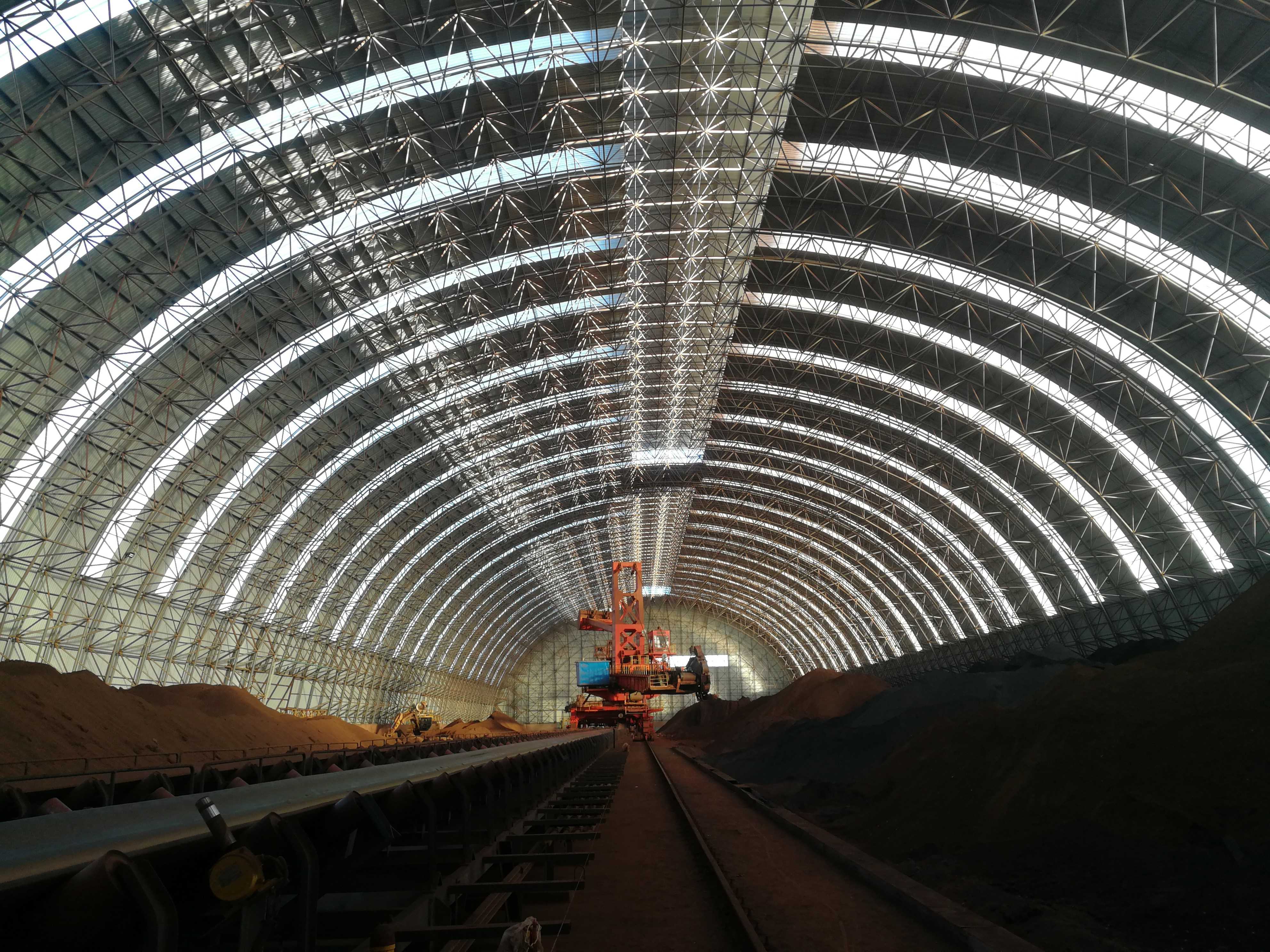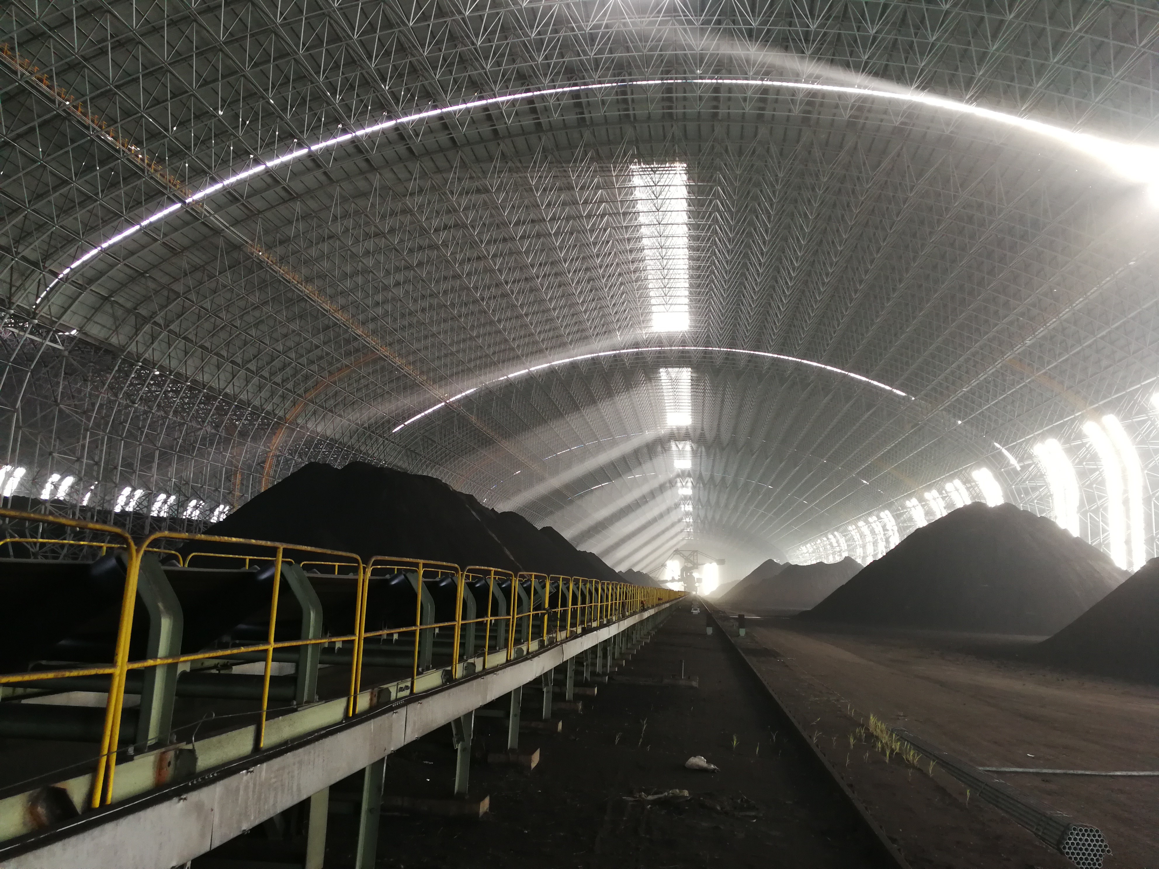全封閉,包括汽車、火車受卸,一次料場,混勻料場,帶式輸送機,網架結構等