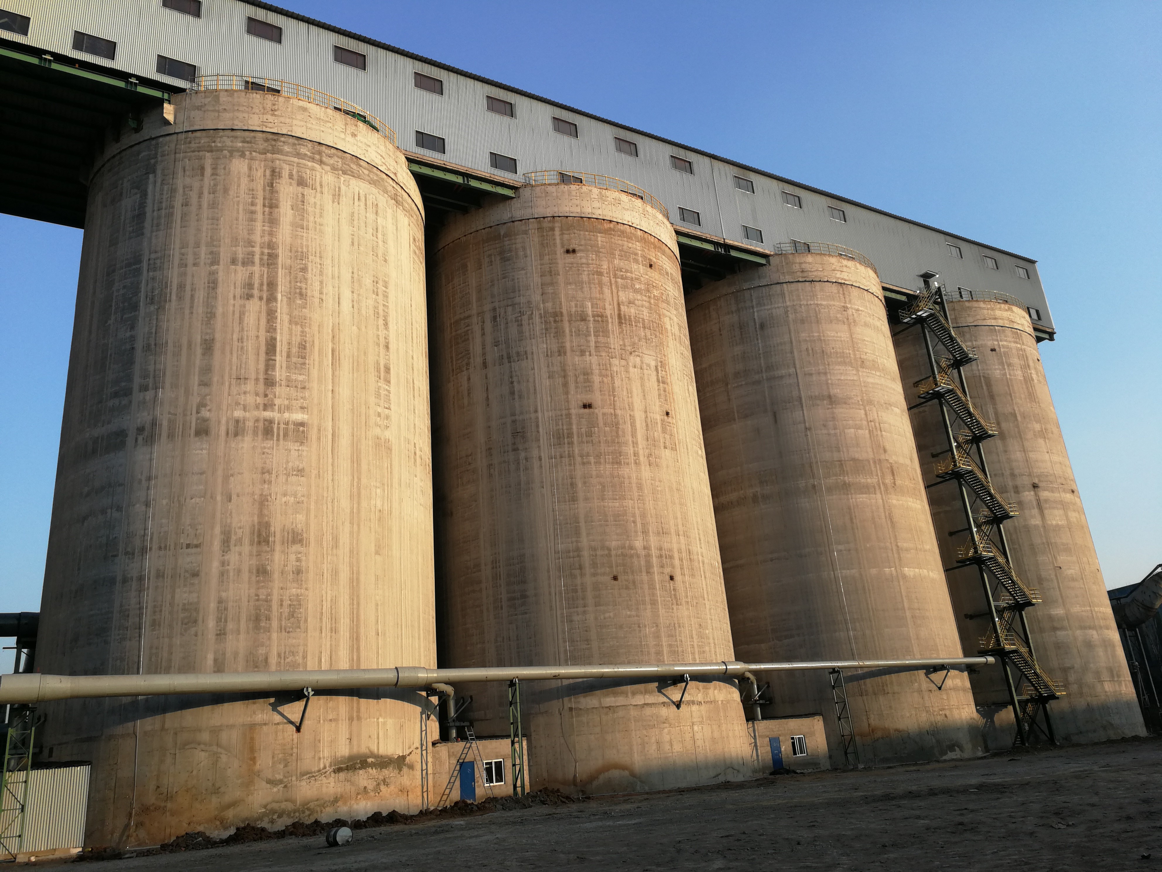 4個直徑24m筒倉,單倉有效貯量約為2.5萬t